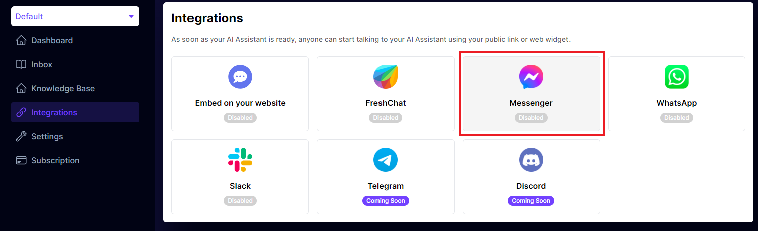 Step 4: Set up integration to connect AI Assistant to Messenger.
