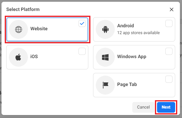 Go to Meta for Developers (must log in with Facebook Business management account)