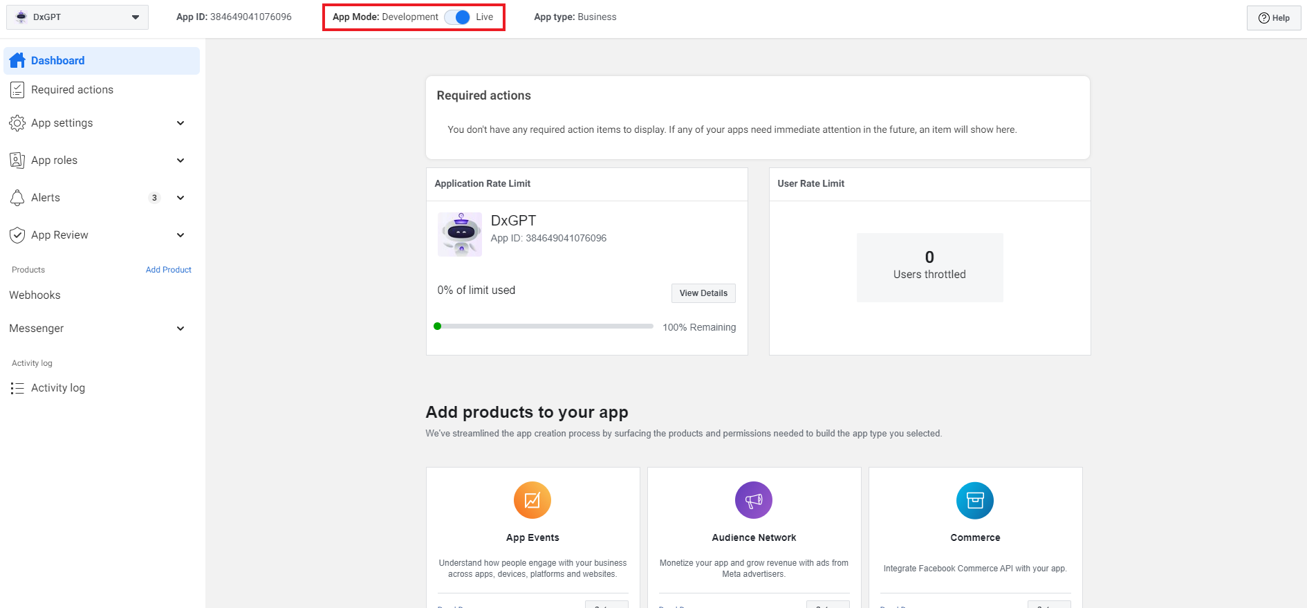 Finally, you change the “App Mode“ to “Live” to make the app public for everyone